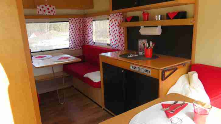 Innen komplett mit Holz ausgekleidet, kleine Küche , Block Bett , urige Tiroler Eckbank., viel Stauraum, TOP ZUSTAND!! siehe Bilder