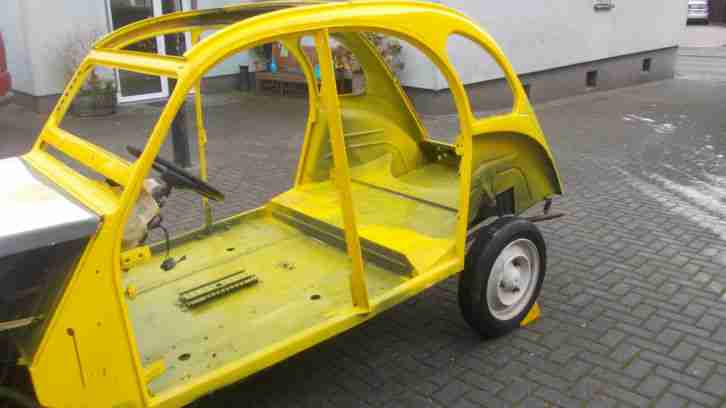 Citroen Ente 2 CV 6versteigert wird hier meine schöne alte Ente... Rahmen,Türen, Kotflügel,Bereifung,Motor mit Getriebe,alle Scheiben außer der Windschutzscheibe und Anbauteilen.Ich habe sie vor ca. 12 Jahren erworben aufgrund der geringen Laufleistung mit ca. 42600 KM..Sie ist Unfallfrei und sollte als Basis für eine optimale Aufarbeitung dienen..Rahmen und Anbauteile sind absolut ROSTFREI,,wie auch auf den Bildern zu erkennen..Es ist noch alles vorhanden...da ich hier nur 12. Bilder einstellen kann,könnt ihr nicht alles sehen.Ernstgemeinte Interessenten können unter twollen@t-online eine Photostrecke mit allen Bildern anfordern...Bei der Lackierung vor ca. 10 Jahren ist die Farbe verlaufen, und das Projekt wurde eingemottet.Nun wird sie hier versteigert,,da wir den Platz brauchen und mittlerweile andere Interessen haben.Die Anbauteile sind,wie auf den Bidern zu erkennen bereits zur Lackierung vorbereitet und an den kritischen Stellen mit Boddy/Steinschlagschutz versehen.Einige Anbauteile am Motor sind demontiert,,jedoch ist auch hier alles vorhanden.Eigentlich müsste alles nochmal angeschliffen werden,,lackiert werden und zusammen gebaut werden.Dann hat man eine schöne alte Ente für sonnige Tage..