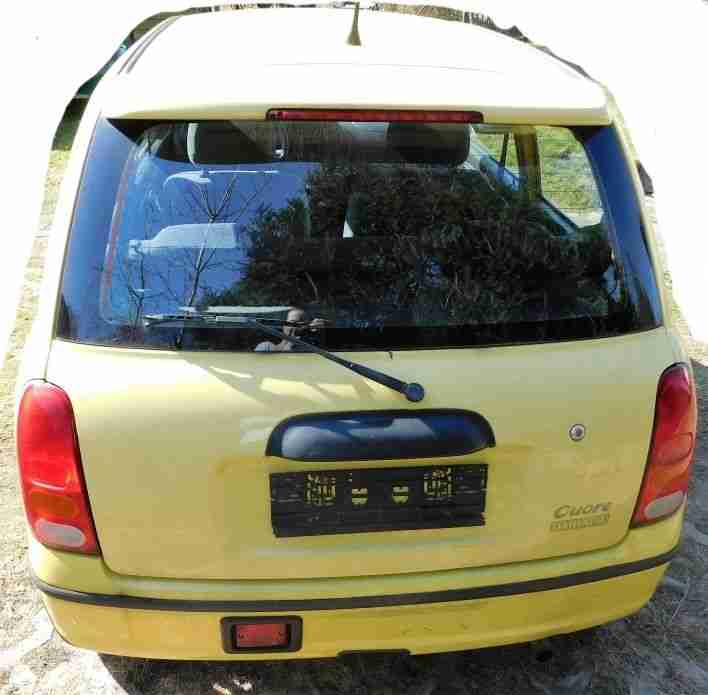 Zum Verkauf steht der abgemeldete Daihatsu Cuore mit abgelaufenen TÜV. Er hat im Oktober 2015 einen kleinen Auffahrunfall hinten, der nicht sofort sichtbar ist (siehe Foto). Nicht fahrbereit. Ist aber bis zur Abmeldung im Oktober 2015 immer gefahren. Zur Ersatzteilgewinnung oder zum Wiederaufbau ohne Rücknahme, Gewährleistung und Garantie. Das Fahrzeug muss innerhalb von 10 Tagen nach Auktionssende abgeholt werden.