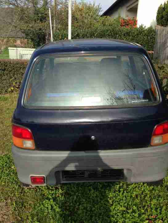 HALLO verkaufe mein Cuore BJ 98 mit 193000 KM auf der Uhr . Der Auspuff fehlt kostet aber neu bei ebay ca 50 euro . Kann man selber machen 2 Schrauben festziehen und den Auspuff an die Gummis hängen kann jeder reparieren . Mann muss manchmal die Zyndkerzen reiningen weil er dann nur auf 2 Töpfe läuft was das sein kann weiss ich nicht . Ansonsten die üblichen optischen mängel bissel rost am Radlauf und der Lack hatt kratzer . Das Auto läfut sonst Super . Hat noch Tüv bis 07/15.