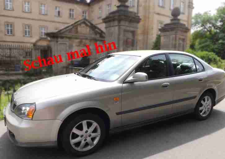 Habe hier einen Deawoo Chevrolet Evanda , TÜV NEU! Technisch TOP, hinten Bremsen Neu, Lambdasonde neu, Kühlflüssigkeit komplett gewechselt, Bremsen vorne noch gut, gebe aber einen Komplettsatz mit hab ich gekauft sind aber wie gesagt die wo drin sind noch sehr gut! Radio kommt ein anderes rein! Elektrisch einklappbare Spiegel, Kofferraum Elektrisch, innenspiegel automatisch abblendbar, Vollleder in sehr guten Zustand! Karosse hat kein Rost oder Durchrostung! Lack hat Vorne Rechts mal einer mit Grau Nachlackiert! Ansonsten Normale Gebrauchsspuren 11 jahre alt! Tripp anzeige A+B! Sitz ist nur Fahrerseite Elektisch Verstellbar, Beifahrer Manuell! Elektr. verstellbarer Sitz, Elektrische Fensterheber, Höhenverstellbares Lenkrad, Klimaanlage, Klimaautomatik, Ledersitze, Servolenkung, Sitzheizung, ZentralverriegelungMotor und Getriebe ohne Probleme, kein Ölverlust! Laut Vorbesitzer Zahnriemen bei 97000 gewechselt! Alarmanlage! Nur Winterreifen!