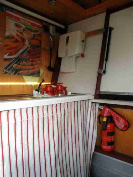 Einsatzbereiter Verkaufsanhänger wie abgebildet mit Geräten ( Grill, Gasherd, Warmwassertherme, LED-Leuchten, Gasflaschen, Tanks uvm. ), Versorgung über 220V, 12V, Gas, EZ 2010, TÜV 07/2017. Aufbau abnehmbar daher Zuladung.