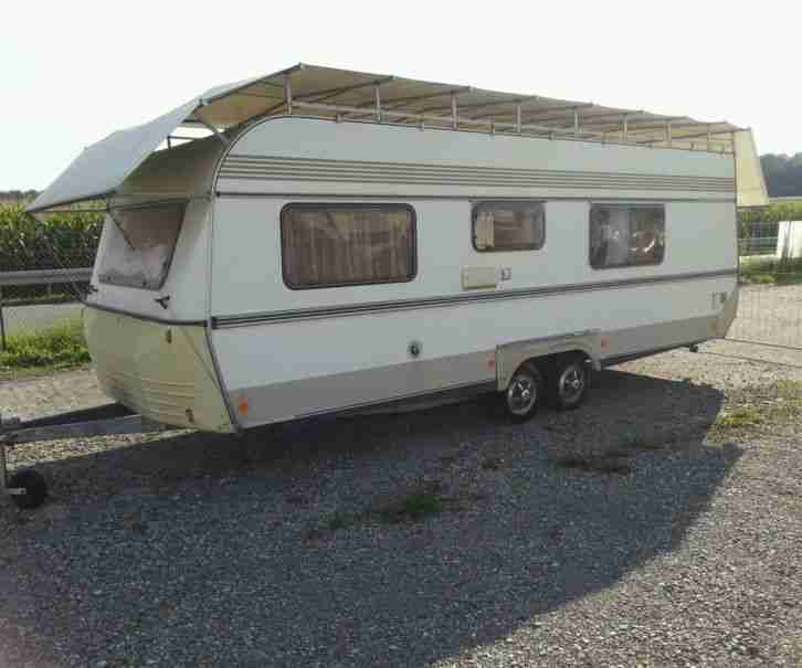 große Markise, Fahrradträger für 2 Räder (max. 60 KG), Aufbautür incl. Mückenschutz, Flachbildschirm-Fernseher incl. DVD, DVB-T-Rundum-Antenne auf dem Dach, Wechselrichter 12V --> 220V (Spannungswandler), Rückfahrkamera, Navigation und Freisprecheinrichtung im Innenspiegel integriert, 100-W-Solarpaneel von Fa. Büttner, Heck-Kurbelstützen
