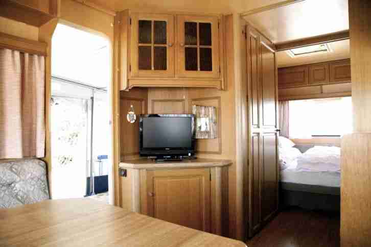 Der Wohnwagen befindet sich in einem gutem Allgemeinzustand. Die Polster sind fest und sauber, der Wohnwagen ist trocken, hat keine feuchten Stellen oder Wasserrränder. Keine unangenehmen Gerüche im Wohnwagen, absolut neutral.