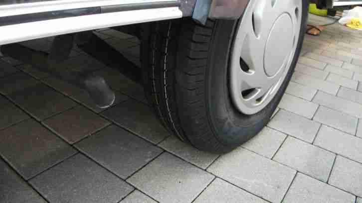 Er hat einen großen Wasserkanister sowie ein Ersatzrad vorne im Gaskasten (Gaskastendeckel hat ein paar Risse geht aber noch).