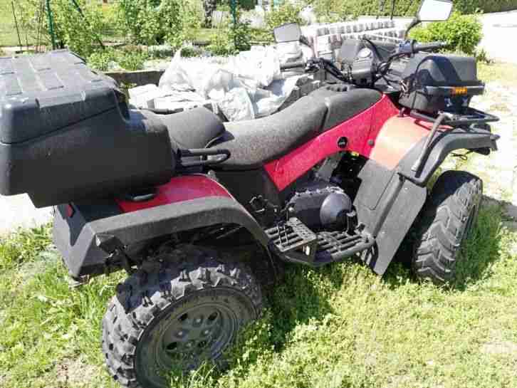 Verkaufe meinen treuen gefährten aus Zeitgründen, ATV ist noch angemeldet hat allerdings seit Juli 2017 keinen TÜV mehr. Gemacht werden müsste nur vorne Rechts und Links Bremsschlauch und die anderen Reifen montieren da die aufgezogenen Reifen nicht im Fahrzeugschein stehen, sind aber für ATV Routen nur zu empfehlen. Letztes Jahr habe ich den Sitz neu bezogen, ein großen LED-Fluter angebaut. Mit dabei sind die 4 Reifen auf dem Bild sind aber auf einer anderen Felge montiert und die Original Rückenlehne. ATV hat 4x4 und kann manuell dazu geschalten werden, es ist kaum Technik verbaut so kann man alles selber richten. Im ATV ist ein leistungsstarker Suzuki Motor verbaut. KM dürfte er ca.20000 haben kann es nicht mehr genau sagen da ich ein gebrauchten Tacho mal eingebaut habe.