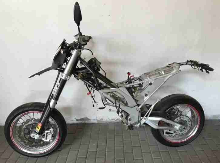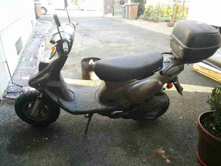 Die Aprilia hat Gebrauchsspuren , Motor Läuft , Kunstoffteile