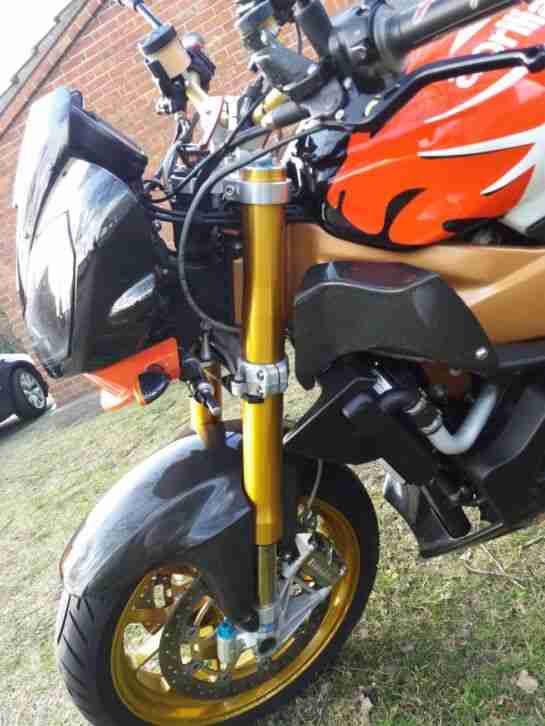 ECHTCARBONTEILEÖHLINS FAHRWERK AKRAPOVIC :-) ANLAGELENKUNGSDÄMPFERTOM TOM NAVI HALTERUNGSOZIUSSITZROCHENLEDERFAHRERSITZBORDWERKZEUGHANDBÜCHERGOLDENE FELGEN BEKOMMENRACINGFAHRERSCHEIBEBREMS UND KUPPLUNGSHEBEL; IN SCHÖN:-)ANDERES MAPPING AUFS STEUERGERÄT GESPIELT; DAMIT SIE MIT DEN AKRAS BESSER HARMONIERT;