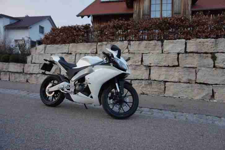 Hiermit verkaufe ich meine stehts treue Aprilia aufgrund dessen das ich auf die A2 klasse umsteigen.Sie war stehts zuverlässig wurde immer warm gefahren und ist ein Garagen Fahrzeug.sie hat aufgeund des vorbesitzers kleinere kratzer an der rechten verkleidung.Sie hat vor ca. 400km eine neue Kette bekommen.Der hinterreifen müsse erneuert werden und beim nächsten öl wechsel die schalthebel rückholfeder erneuert werden.Sie springt Problemlos an und ist ein meiner meinung nach perfektes einsteigrr motorrad.Eine sitzbank Abdeckung ist auch vorhanden.Der kilometerstand beträgt derzeitig 24300km da sie aber noch gefahren wird kann dieser sich noch ändern.