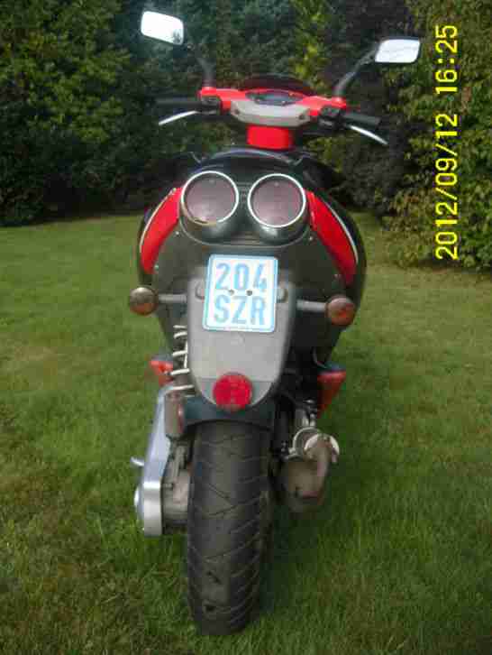 bremsen sind neu reifen sind auch ok.das Hinterrad ist neuwertig und die Zündkerze ist auch neu. und der Auspuff ist ausgetauscht es ist nicht der Auspuff montiert der auf dem Foto zu sehen ist das model ist aber dem vom Foto ähnlich.