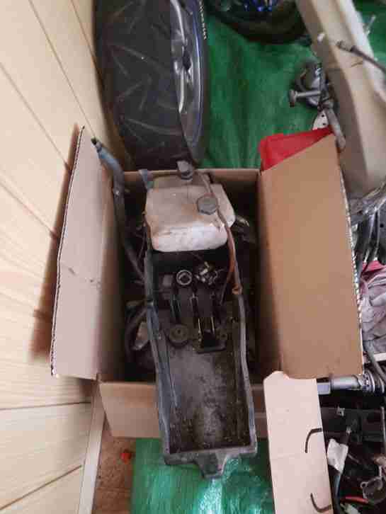 Bastlerfahrzeug, Motorrad läuft einwandfrei, ist aber ohne Batterie. Viele Teile, 1komplettsatz Reifen mit Anbauteilen(Bremsen, Ritzel), Ersatzmotor, muss nur Zündkerzengewinde gemacht werden(Helicoileinsatz).