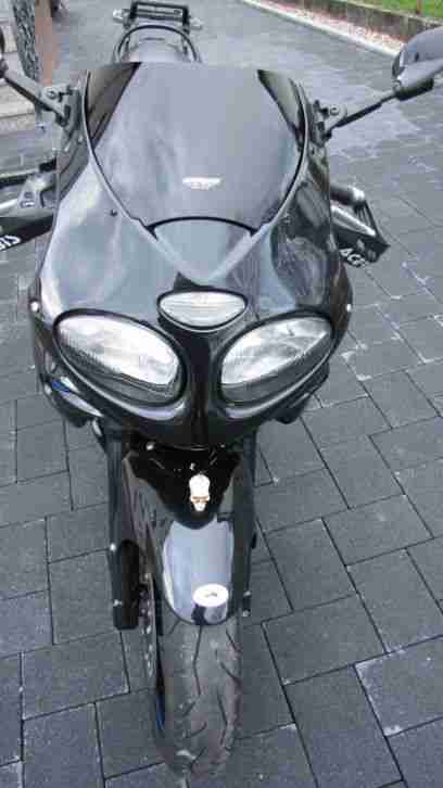 Die Reifen sind neuwertig und TüV würde ich auf Wunsch neu machen lassen. Alle regelmäßigen Inspektionen sind in einer Triumph - Vertragswerkstatt durchgeführt worden. Das Fahrzeug ist sturzfrei und in Top Zustand. Ich habe die Daytona 1999 von einem Freund mit 1200km gekauft, sie ist also fast ausschließlich von mir gefahren worden. Sie ist angemeldet und kann bei entsprechender Witterung Probe gefahren werden.