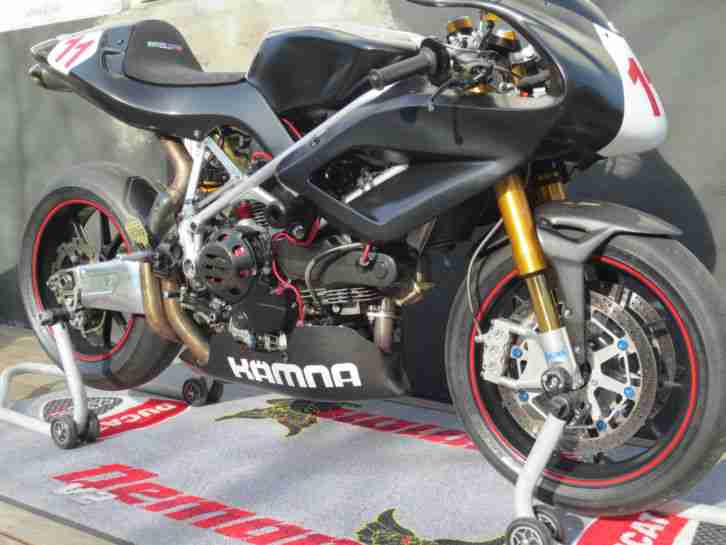 Zur weiteren Ausstattung gehören eine Wegfahrsperre, ein eingetragener Rizoma Sonderlenker, kleine Blinker, einen kleine Schutzscheibe, kurzes Heck, Carbon Seitenteile und ein Montageständer.