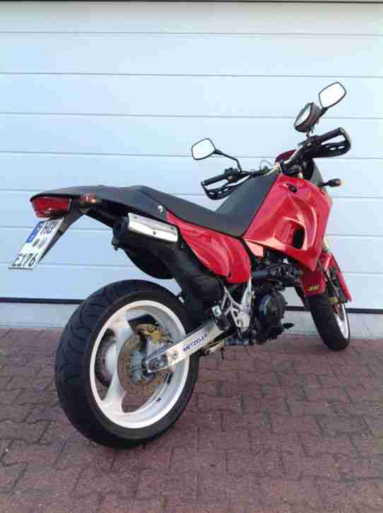 Verkaufe meine Supermoto. Einzylinderpower mit top Bremsen und Fahrwerk. Sie lässt sich in den Kurven wie ein Fahrrad fahren und kann es in den Kurven Problemlos mit den Supersportmaschienen aufnehmen. Ich besitze das Motorrad nun knapp 1 Jahr und habe der Maschiene neue Reifen, Bremsen, und einen Ölwechsel spendiert. Verkaufe dieses 100%ige Spaßobjekt wegen Neuanschaffung. Das Motorrad ist angemeldet und kann Probe gefahren und ebenso mit meinen Nummern nach Hause gefahren werden.