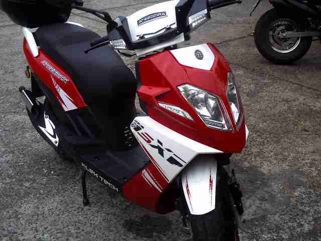 Ich habe eine Helmfachanlage verbaut,sowie Edelstahl trittbleche und Spritzschutzblech eingebaut.Desweiterem Ihm einen Bösenblick gegeben . Der Roller hat jetzt 2405 km auf der Uhr.