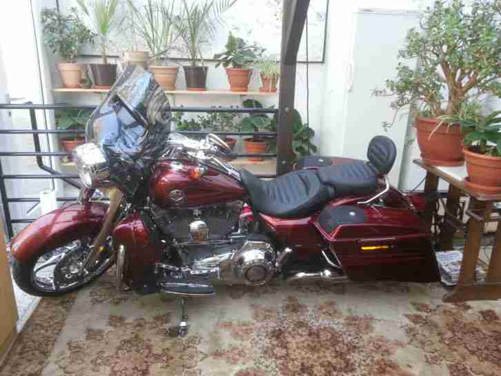 Fahrzeugbeschreibung DIE TECHNSCHEN DATEN UND WERTE SIND JETZT AUCH ALS FOTO ZU SEHEN Das Motorrad kann vor dem Kauf besichtigt werden.Aber bitte Termin zur besichtigung einhalten oder telefonisch absagen. Hallo ! Aber Achtung !! GANZ NEU !!! Nicht nur der Preis hat sich geändert,auch die Garantie wurde verlängert bis zum 26.8.2018.Bei .Da diese Harley zeitgleich auch bei AUTO SCOUT angeboten wird , bekommt der erste Käufer das Motorrad !!Bis heute hat sie nur im trockenem gestanden. Zuerst in der Wohnung eines Freundes und seit einem Jahr bei mir im Wintergarten.(Zur Zeit steht sie zwar nicht mehr im Wintergarten, aber immer noch im Trockenem am Batteriewächter) Nun habe ich mich dazu entschlossen sie zu verkaufen. Sie ist, wie auf den Bildern zusehen in einem schönen Rot lackiert und hat viele Screaming Eagle Teile und schöne verchromte Räder. Erstmals bei einer Road King kommt in dieser Maschine 2013 ein Audiosystem zum Einsatz. Es umfasst einen Verstärker mit 200 Watt Leistung sowie eine Schnittstelle für den mitgelieferten Apple Ipod mit acht GB Speicherplatz. Das System kann vom Lenker aus gesteuert werden. Zwei 5x7 Zoll große Lautsprecher mit koaxialen Hochtönern sind auf den Deckeln der Seitenkoffer montiert, zwei weitere 5,25 Zoll-Chassis mit koaxialen Hochtönern befinden sich in den Beinschilden der Verkleidung.(Bedenkt was soeine Musikanlage extra kostet !! )