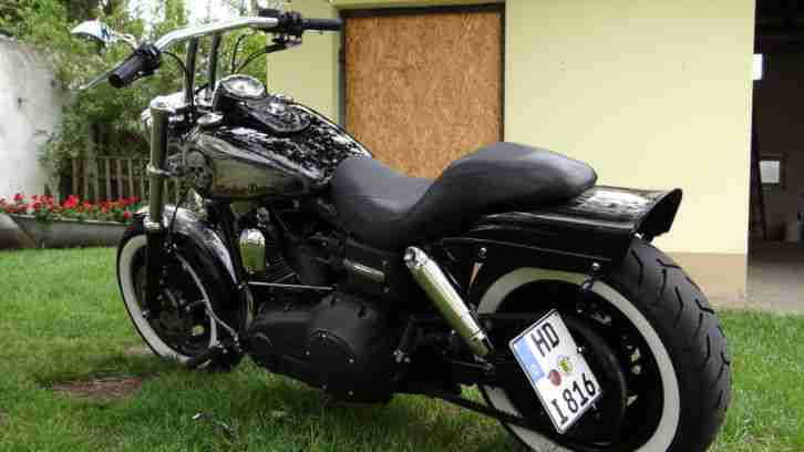 | “FOTOS SIND VON 16.05.2015 die Fat Bob steht ab 2.6.2015 bei GON"S Costum Werkstatt im Ausstellungsraum und kann von Di -Sa 9:00-18:00 ohne Anmeldung besichtigt werden.” |