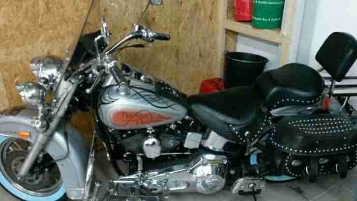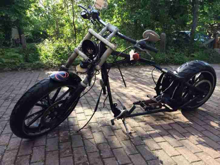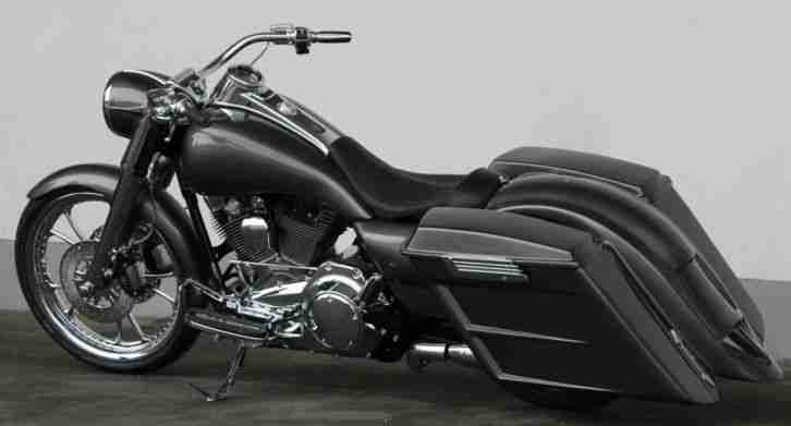 Das Fahrzeug ist genau so wie auf dem Bild mit Umbauten: Frontscheinwerfer, V-Team Lenker, Rüchlicht/Blinker, Airbrush Sonderlackierung, Spiegel, Kennzeichenhalter, Verkleitung Sitzbeszug/ Einzelsitzbank, Bremsen 11,5 Zoll 6 Kolben, Vorverlegte Fußrasteranlage, RCC Sonderräder(mehrteilig) Hinterrad 230iger legtr aber 275mm aus aufgrund er Felge, offener Belt(mit Stützlager), R.Stocker Frontgabel, HPU-Schwinge, Luftdruckfahrwerk (updown), Motor ist ein modifizierter und Edler EVO-Motor verbaut mit 100cui 1637 ccm Rev-Tech,Preis ist VB.