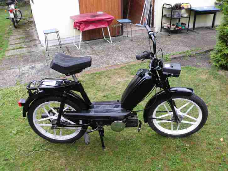 - Auspuff und Originalkrümmer wurden ausgetauscht. Der alte Auspuff und der alte Krümmer stehen dem Käufer zur Verfügung. - Linker Drehgriff für Kupplung und Schaltung wurden erneuert.- Neue Kupplungslamellen und Getriebeölwechsel nach 1000km.- Komplette Überholung des Vergaseres mit Originalersatzteilen aus dem Hause BING. - Austausch der Gabelholmfedern, hier wurden bauähnliche von einem Yamaha-Mockick verwendet. Federbeine wurde gereinigt und gefettet.- Kolbenringe wurden erneuert. Kolben und Zylinder sind in einem guten Zustand. - Zündung wurde irgendwann von jemandem sehr gut eingestellt. Der Kondensator wurde ausgetauscht, der Unterbrecher befindet sich in einem sehr guten Zustand. Das Anlassverhalten und Drehfreudigkeit des Motors beweisen es. Es gab keine Veranlassung für mich daran etwas zu ändern.- Bremsen und Radlager wurden erneuert.- Bremsgestänge und Bremshebel hinten sowie Bremszug vorne wurden erneuert. - Die Antriebskette wurde erneuert.- Die Fahrzeugelektrik wurde repariert und überarbeitet. Da es Vorschrift ist, mit Tagfahrlicht zu fahren wurde der Lichtschalter eliminiert. An dessen Stelle kam der Blinkerschalter.- Das Mofa wurde mit LED-Blinkern, Blinkerrelais und einem 6V-Gleichstromregelgerät ausgestattet. - Eine neue Rückleuchte mit LED-Birnen wurden eingebaut. - Alle Bowdenzüge wurden erneuert und die Nippel gelötet. - Die Schaltung funktioniert für eine Handschaltung gut. Mein Sohn kam nach ein paar Kilometern sehr gut zu recht. - Tachowelle und Tachoantrieb wurden erneuert und der Tacho funktioniert relativ genau.- Neue Bereifung mit neuen Schläuchen.