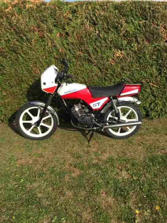 Hercules K50 RLC, Baujahr 1978, mit 13522 km lt. Tacho, im org. Zustand von 1978 (auch nicht nachlackiert), der Motor dreht und lässt sich schalten, der Tank ist innen rostfei, Chromteile top, Schlüssel mit dabei, Papiere leider nicht mehr auffindbar.In diesem Zustand selten zu finden!