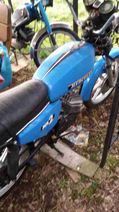 Weitere Arbeiten: Felgen sandgestrahlt, grundiert, lackiert (Acryllack Silber);Rahmen + alle Rahmenteile sandgestrahlt, grundiert, lackiert (Acryllack Schwarz)alle Chromteile aufgearbeitet und poliert (schöner Glanz)Schutzbleche von innen versiegeltTank von innen sandgestrahlt und chemisch behandelt, versiegelt (100% rostfrei) Sitzbank von unten grundiert und lackiert; Bezug aufgearbeitet und lackiert (Lederlack); Zierleisten neuAufkleber neu Moped läuft einwandfrei, Schlüssel und original Betriebserlaubnis vorhanden