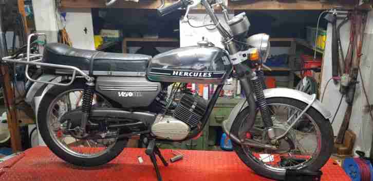 Sie bieten auf eine Hercules Prima GT Baujahr 1987, seit 2014 außer Betrieb. Deshalb Verkauf als Bastlerfahrzeug. Der Motor läuft. Die Kupplung und Schaltung müssen eingestellt werden. Gebrauchsspuren gemäß Bildern. Privatverkauf, kein Umtausch, keine Garantie!