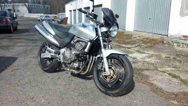 Die Honda CB1, wurde komplett Restauriert. Mehr Bilder der Restauration gerne per Mail. Motorrad ist in einem sehr guten optischen und technischen Zustand (nahezu Neuwertig). Verschleißteile wie Luftfilter, Bremsbeläge, Gablelöl mit Dichtringen und Staubkappen, Radlager und Lenkkopflager wurden erneuert. Motorrad hat offene Leistung 58 PS. Ein Drosselsatz auf 34 PS ist dabei, wobei ich da nicht viel Unterschied in der Beschleunigung feststellen konnte. Läuft mit Drossel locker 160km/h ohne ca. 190km/h. Maschine hat echte 46000 Kilometer, nicht Meilen gelaufen. Motor hat neues Öl und läuft dank neu synchronisierter Vergaser tadellos. Besonderheit an der CB1 ist der absolut drehzahlfeste Motor, der nicht wie üblich über Kette sondern über Stirnräder gesteuert wird. Die 4 Zylinder haben einen guten Sound und die Leistung ist einer 600er ebenbürtig. Die CB1 ist besonders für kleinere Leute oder Frauen geeignet, da die Sitzhöhe nur ca.71 cm beträgt. Die CB1 wurde etwas Umgebaut und optimiert. Es sind Wilbers Federn in der Gabel, und es ist ein voll einstellbares Federbein der CBR 900 verbaut. Handling und Straßenlage sind Top. Es wurde eine andere Front mit Scheinwerfer und digitalem Tacho verbaut. Ein Superbike - Lenker wurde ihr auch spendiert. Bremsleitungen sind auf Stahlflex umgebaut, und verzögern sehr gut. Alle Umbauten und Änderungen sind natürlich Eingetragen oder haben ein E-Prüfzeichen.