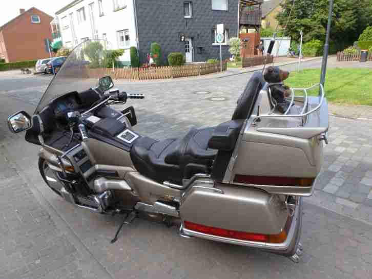 Weil meine Kräfte schwinden, biete ich euch hier eine prachtvolleHonda Goldwing GL1500 anDie Goldi wiegt gut 400 kgund wir haben uns diesen Wunsch etwa 10 Jahre zu spät erfüllt.Sie wurde 1993 in den USA gebaut und hat somit einen Meilenzähler.TÜV hat sie noch bis März 2016und einen Meilenstand von 77.204die mal 1,6 sind 123.526,4 Kilometer.Die Goldi hat Radio und Funk,etliche verschiedene Leuchten und vieles mehr.Seht euch einfach die Bilder an,die sagen sowieso mehr als 1000 Worte.Und wenn dann noch Fragen auftauchen mailt oder ruft mich an.Tel. 02838-910649 / Handy 0174-6634191Gern kann sie auch vorab nach Terminabsprache besichtigt werden!