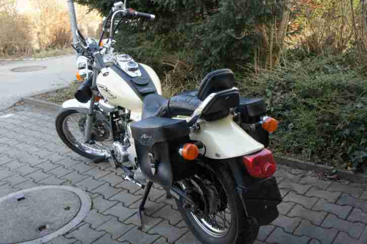 DEUTSCHER TÜV !!!! Zusätzlich sind noch 2 Stück original Satteltaschen mit orig. Halterung dabei. Die Indian Chief ist ein starkes, schweres Stück Motorrad Vergangenheit. Dieses wunderschöne Motorrad ist ein Hingucker!!! 320 Kilogramm und einen Radstand von 1750 Millimetern ist kein Spielzeug, sondern ein zweirädriges Kunstwerk aus Schwermetall. Erste Modelle der Indian Chief Classic wurden von 1924 bis zum Jahr 1953 gebaut. Dieses Modell wurde im Jahr 2000 gebaut. Herzstück dieser Maschine ist ein vom amerikanischen Edelhersteller S&S bezogener luftgekühlter Zweizylinder mit 45 Grad-Zylinderwinkel und einem Hubraum von 1573cbm. Die Leistung beträgt ca. 72PS bei 4800U/min. Höchstgeschwindigkeit ca. 180 kmh. Der Zahnriemenantrieb ist von Harley Davidson. Sie können dieses Motorrad ganz unkompliziert bei jedem „Harley Davidson Schrauber“ warten lassen. Ich verkaufe diese Maschine aus meiner Sammlung, weil ich Platz für ein anderes Spielzeug brauche : ) Melden Sie sich gerne für eine Besichtigung (05221-122011), oder wenn das Wetter es erlaubt für eine Probefahrt. (Maschine ist angemeldet).