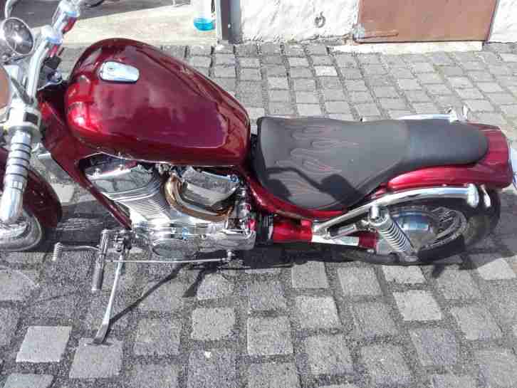 verkaufe eine Intruder mit vorverlegten Rasten, Miller Auspufanlage,neue Reifen vorn u.hinten,Flachen lenker,mini Blinker Kellermann,Vergaser,Tank Neu ,Durchsicht im wert 1250.00€mit Rechnung.Sofort Fahren kein Wartungsstau. Teile : Satteltaschen,Fusrasten,Schutzblech hinten ,Seitlicher Kennzeichenhalter vom Umbau noch Vorhanden.Alle Umbauten sin Eingetragen.Kontakt bitte nur per Mail!!! Danke. Barzahlung bei Abholung ,Versand kann Organisiert werden ,gegen Kostenpauschale vom Käufer!!!