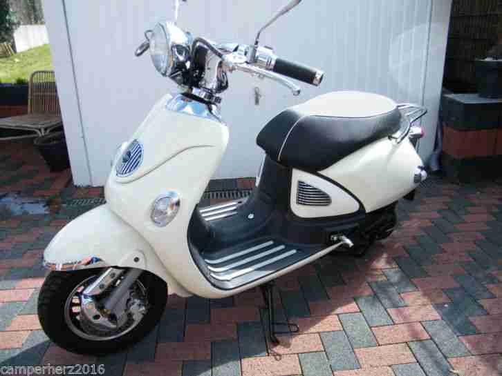 Habe den Roller 2013 erworben und Heim gefahren, war eigentlich zum Restaurieren gedacht für die Sammlung, weil das Modell so außergewöhnlich ist.