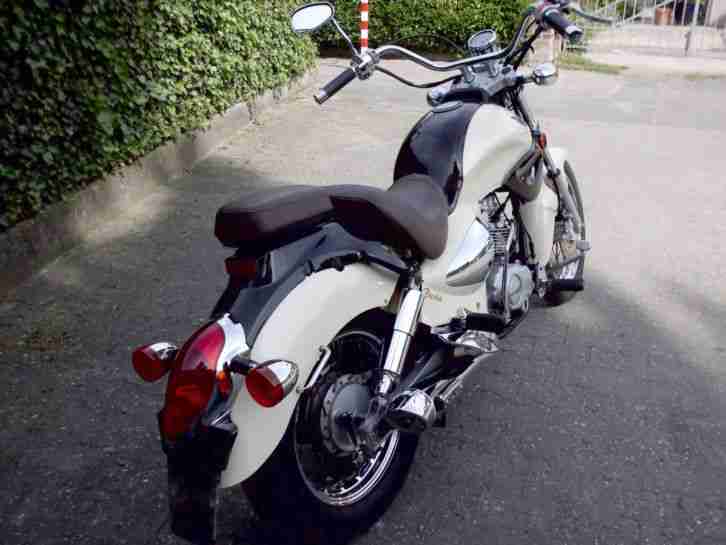 Zustand bitte den Fotos entnehmen, dabei bittedie Alters üblichen Kratzer und Abschürfungen beachten, insbesondere das abblättern desChromes auf Auspuff und Verkleidungsteilen.