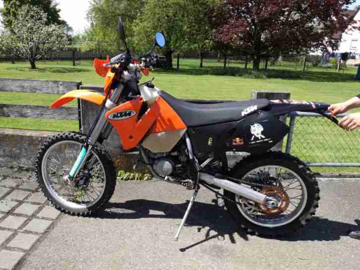 Verkaufe meine KTM 125 EXC mit Straßenzulassung. Sie springt beim ersten Kick an und läuft ohne Probleme. Technisch und optisch ist sie gut in Schuss, hat aber natürlich Gebrauchsspuren, da es sich um kein neues Motorrad handelt und sie gefahren wurde und kein Ausstellungsstück war ;-)
