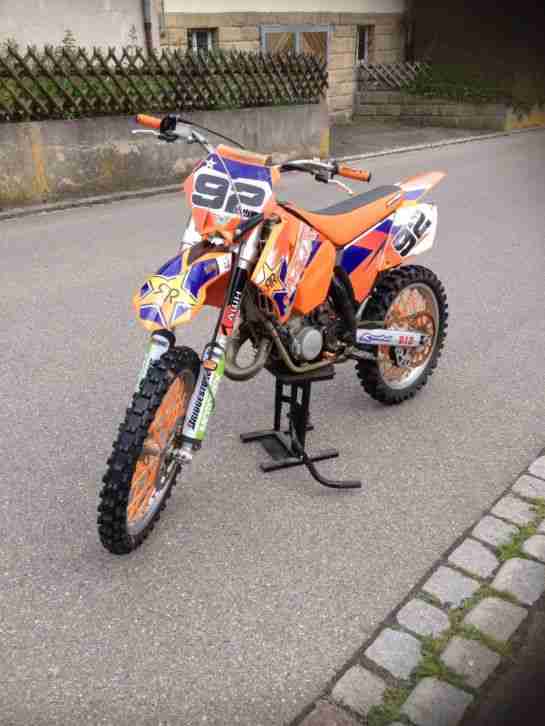 KTM 350 EXC F Modell 2014Verkauft wird eine gebrauchte KTM mit 130 Betriebsstunden. Kolbenring und Ventilführungen wurde bei 100 BH gewechselt. Öl und Verschleißteile sind regelmäßig gewechselt worden.Es sind neue originale Plastikteile und ein KSX Sitzbankbezug verbaut. Die originale Federgabel wurde gegen eine 4CS Gabel, welche kinderleicht von oben einstellbar ist getauscht.
