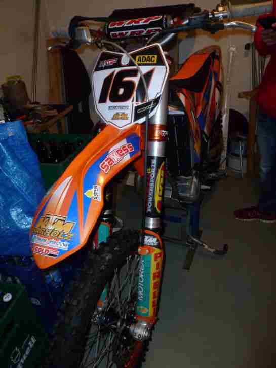 Hallo,verkaufe meine Ktm SXF 450, es handelt sich um ein EX-Trainingsmtorrad von Dennis Ullrich. Habe das Motorrad ende des Jahres 2014 bei Ktm Sarholz erworben, Service wurde gemacht, alle Verschleißteile wurden erneuert. Alles wie neu. Seit dem Kauf, bin ich 2x gefahren, Xtrig Gabelbrücke, Saxess Felgen, Haan Naben, HGS Auspuffanlage, TKM Fahrwerk, Wrp Lenker, Starthilfe usw. Bei Fragen einfach anrufen.