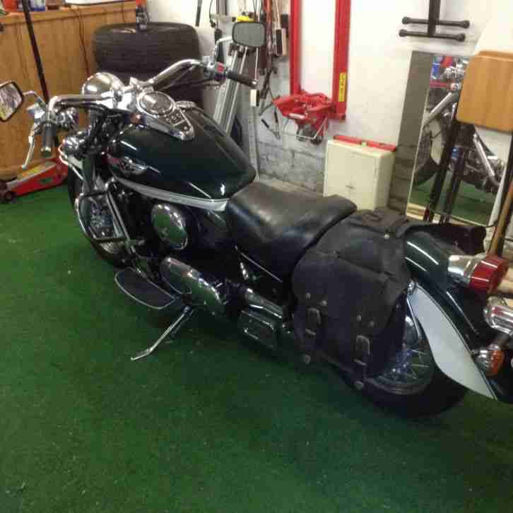 Maschine ist als SUPER BIG BIKE umgebaut, Sonderlenker mit ABM, Stahlbremsleitung, Verstellbare Federbein hinten, Einzelsitzbankhocker, zurück verlegte Fußrastanlage, Auspuffanlage Speed Produkts, Lenkverkleidung mit Doppelscheinwerfer, Fahrtrichtungsanzeige am Lenkrad, Leichtmetallfelgen FISCHER dreiteilig - neu Preis 2500€. Alles eingetragen, Papiere sind dabei und funktioniert auch alles.