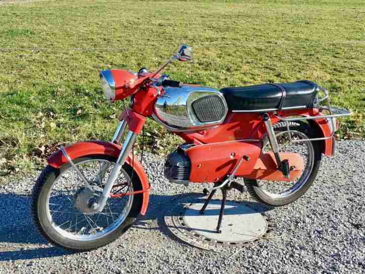 Verkaufe schweren Herzens meine Kreidler Florett RM Baujahr 1972 in einem sehr schönen Originalzustand, da ich ins Ausland ziehen werde.Der originale Erstlack in vulkanrot ist noch wunderbar erhalten und es ist keinerlei Rost vorhanden, da die Kreidler stets überdacht im Trockenen stand.Das Mokick hat noch die originale Betriebserlaubnis, das Originalhandbuch und alle Schlüssel.