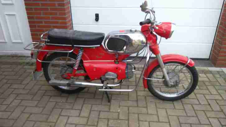 | “Verkaufe hier meine Kreidler RS50 Normale Gebrauchsspuren.Erstzulassung war 31.01.68Der Tank ist Rostfrei, springt sofort an.Mit Papiere und schlüssel und originalrechnung aus 2ter HandSie hat die 2 Typischen Tankbeulen Wahrscheinlich vom Rennlenker.Sitzbank hat nen kleinen Riss.Moped Springt sofort an.” |