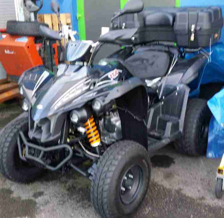 Biete ein gebrauchtes, fahrbereites Quad an, das einen Sportauspuff ( e-Prüfzeichen vorhanden) mit dickerem VA Krümmer, Sportluftfilter, 28er Tuningvergaser, Spurverbreiterung vorne besitzt. Tüv bis 11/15 u. 4 neue Reifen nicht montiert u. gebrauchtem Koffer für 2 Helme mit dazu. Läuft ca. 90km/h, ist sehr leicht und agil. Zum Driften auf losem Untergrund oder auf Schnee sehr gut geeignet. Wurde auch im Winter gefahren, Zustand dementsprechend. EZ 8.6.2004, Km unbekannt, da Austauschtacho mit ca. 6000km. Raucht etwas blau und braucht etwas Öl. Bin der 5. Vorbesitzer. Kaufvertrag als Unfall und Bastelfahrzeug ( Fahrzeug kippte im Gelende schon mal um und blieb schon mal liegen weil der Vergaserschwimmer hängen blieb) ,ohne Garantie oder Rückgaberecht aufgrund der Mängel und des Alters. Bei Fragen oder Besichtigung in 73054 Eislingen bitte 01602327659 anrufen oder SMS schreiben. Momentan bleibt der Schwimmer hängen, so daß es zu wenig Sprit bekommt und bei Vollgas stottert. Also was für Bastler. Habe einen neuen 30 er Vergaser mit Beschleunigerpumpe besorgt, der noch eingebaut werden muss. Am alten Tuningvergaser klemmt der Schwimmer immer wieder und muss wohl zurechtgebogen werden, oder den Neuen einbauen und anpassen.