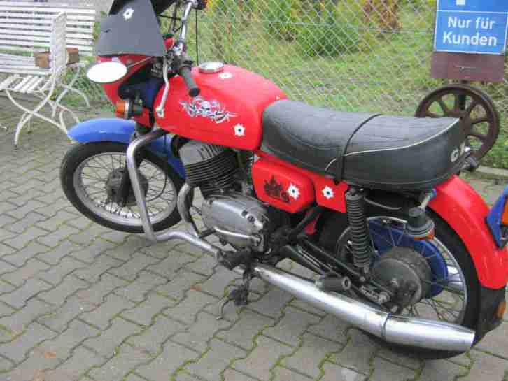 | “Hallo ihr bietet hier auf eine ts 150, die von meinem Vorgänger ein wenig auf cross getrimmt wurde.Sie springt gut an und läuft recht ordentlich.Elektrik teilweise erneuert,Regler, Widerstand, Batetrie.Die machine hat rund 43000 Km weg, und der TÜV ist fällig,sollte aber kein Problem sein, Elektrik funktioniert, und die bremsen greifen gut” |