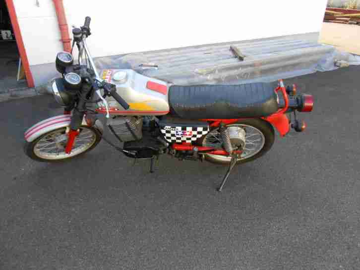 Hier können Sie eine Maico MC twinshok 250 (Baujahr 1978) ersteigern. Die überragenste Technik, die Maico je auf den Markt brachte. Die Maschine verfügt über eine kontaktlose Zündung und über die orginalen Falk Kunststoffteile. Die Maico ist sofort einsatzbereit - der Motor läuft einwandfrei. Kettensatz, Amaturen, Lenker, Reifen und Vergaser sind neu. Der Auspuff ist neuwertig. Die Gabel ist dicht. Es ist kein Rost an den Speichen und generell nur minimaler Rost an der kompletten Maico. Die Sitzbank ist neu bezogen. Das Schutzblech vorne ist defekt (zwei kleine Risse links und rechts), aber noch brauchbar. Habe die Maschine heute nochmal 20 Minuten auf Waldwegen bewegt. Der Motor springt nach 2x kicken an und läuft sehr gut, die Gänge lassen sich sauber schalten und der Sound ist der Hammer. Für ihr Alter fährt die Maico wirklich gut. Es handelt sich bei der Maico um ein ehrliches Motorrad. Trotzdem wird es als Bastelfahrzeug ohne Rücknahme und Garantie verkauft, denn diese ist vor mehr als 35 Jahren abgelaufen. Abholung innerhalb einer Woche nach Beendigung der Versteigerung.