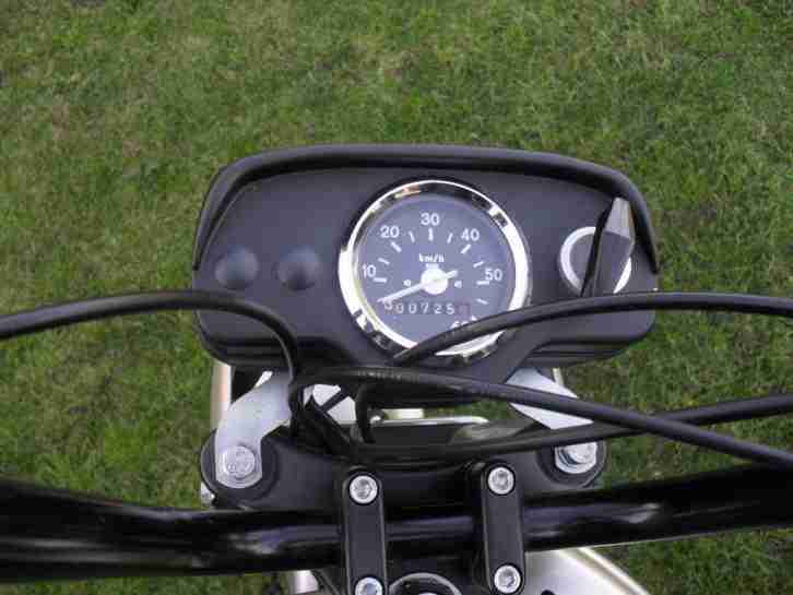 Nun wurde eine Inspektion gemacht und Zündkerze und Benzinschlauch ausgewechselt. Sonst alles original. Die Mofa läuft etwas schneller als 30 km/h. Letzte Woche haben wir sie angemeldet. Es können daher noch wenige km hinzu kommen.