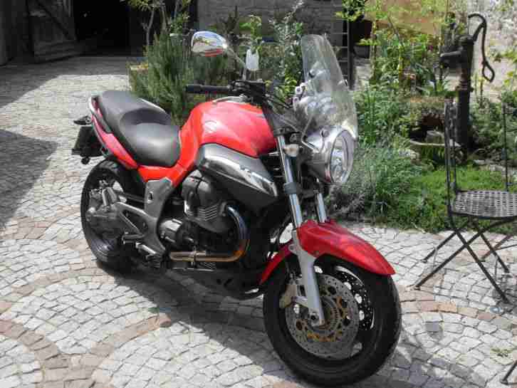 Moto Guzzi Breva 1100 ccm, Erstzulassung 16.04.2008 ca. 25.000 Km, ABS, Hauptständer, rot, unfallfrei, mit Koffersatz und Tourenscheibe, hinten neu bereift, neuer TÜV, ideales Reisemotorrad, ich nenne Sie Bella. Die Koffer werden nicht separat verkauft.