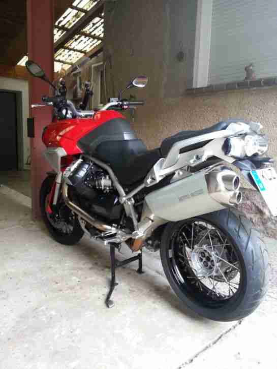 Gut gepflegte Moto Guzzi Stelvio aus 2008 mit 19500 km und TÜV bis 5.2017Eine große Inspektion wurde dieses Jahr bei Moto Guzzi gemacht!Beide Reifen sind kurz vor der Verschleißgrenze sowie die vorderen Bremsbeläge.Der silberne Hitzeschutz vom Auspuff ist jetzt schwarz hitzebeständig gepulvert.Das Motorrad fährt,lenkt und bremst tadellos!Besichtigung und Probefahrt sind kein Problem!