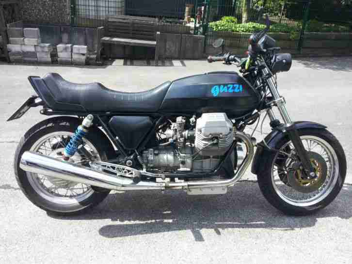 Guzzi wurde 2009 kompl. umgebaut. Rahmen Cali 3, wurde neu lackiert(pulverbesch und Kunst.überzogen). Tag der Erstzulassung 14.03.1990. Eingebaut wurde ein 850er Motor kompl. mit Getriebe general überholt. Orig. Gabel, Bremse vorn Moto Guzzi 1100 Sport, Umbereifung auf 17 Akront Speichenfelgen. Alles im Brief eingetragen und vom Tüv Nord