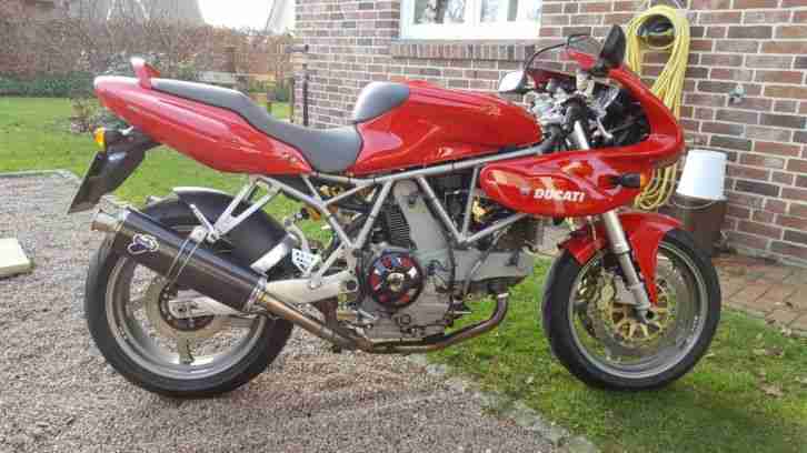 Sehr gepflegter Zustand. Absolutes Liebhaberstück. Komplett checkheftgepflegt bei immer dem gleichen Ducati Vertragshändler. Deutsche Erstzulassung. Ein Vorbesitzer. Letzter großer Desmo-Service (Rechnungsbetrag 2.389 Euro) inkl. Zahnriemen, Ventilspiel und neuen Ventilführungen (Serien-/Materialfehler, die originalen Führungen sind nach ca. 40tkm immer verschlissen) bei km-Stand 43.500.