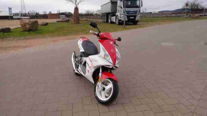 Biete einen Jet Force R Cap der Marke Peugoet im super zuverlässigen u.gepflegten Zustand an.Neue gemacht wurde 2 Marken Reifen,Bremsbeläge mit Bremsflüssigkeit,Battarie,Variomatic mit Gewichte,Sportkupplung,Antriebsriemen,Lüfterrad,Rote Lenkgriffe,Zündkerze,Marken Sportauspuffanlage.Außerdem gibts eine Soundanlage dazu.uvm.Der Roller ist unverbastelt u.nur im Sommer gelaufen daher wenig km gelaufen.Die Drossel wird vor der Übergabe eingebaut,derzeit läuft der Roller 80 kmh ohne Drossel.Der Preis VB 1300,00 Probefahrt jederzeit möglich u.erwünscht!