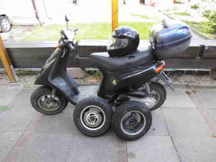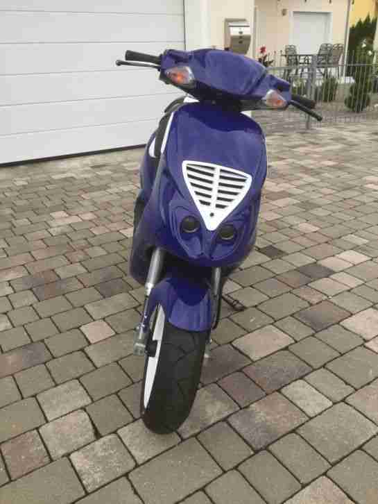 Er wurde vor 2 Jahren neu lackiert, bin bis letztes Jahr noch mit meinem Sohn damit gefahren und seit dem steht er! Es ist ein neuwertiger Zylinder polini Corsa 70 ccm mit 19 mm vergaset verbaut. Der Roller wurde wie gesagt nur für paar runden mit meinem Sohn genutzt!
