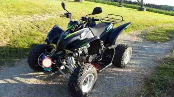 Es ist definitv kein Einsteigerquad Leistung ist wirklich der Wahnsinn schätzungsweise 75 -80 PS (Powercommander Doma Sportauspuff Luftfilter usw. alles gemacht) Zylinder und Kolben allerhöchstens 10 Stunden gelaufen also wie neu.