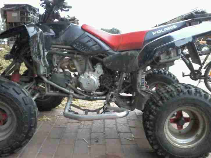 Polaris Predator 500 ccm. Mit Topcase und TÜV bis Dezember 2015.Leider mit Motorschaden als Defekt ohne Garantie und Gewährleistung...Pleuel ist durch Motor gegangen.....Als sondrrzubehör ist die wileyco Sportauspuffanlage verbaut.